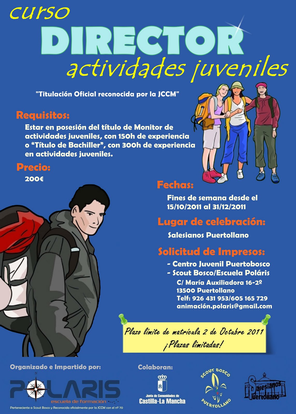 El grupo Scout Bosco a través de su escuela de formación Polaris, anuncia su próximo curso, en este caso se trata del curso de DIRECTOR de actividades juveniles.